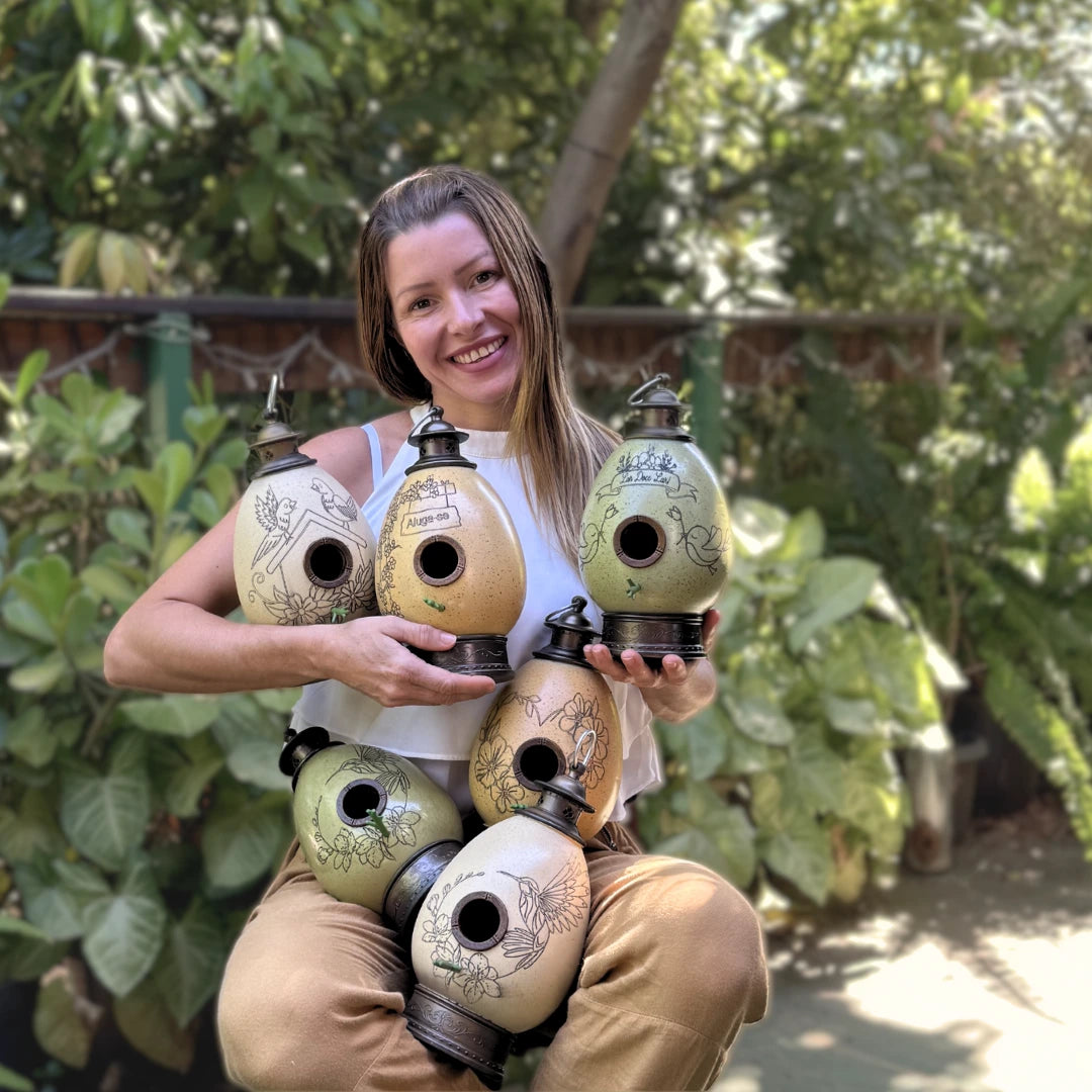 Sou a Mary, sou artesã, e confecciono cada casinha para pássaros manualmente, garantindo que cada peça seja não apenas funcional e atrativa para os passarinhos, mas também decorativa e encantadora para transformar jardins, pergolados ou varandas em um convite para apreciar a natureza!🧡